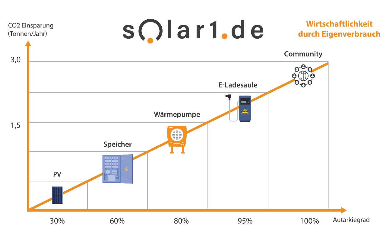 Der Eigenverbrauch kann durch eine solche Anlage zu 80 bis 100 Prozent abgedeckt werden.